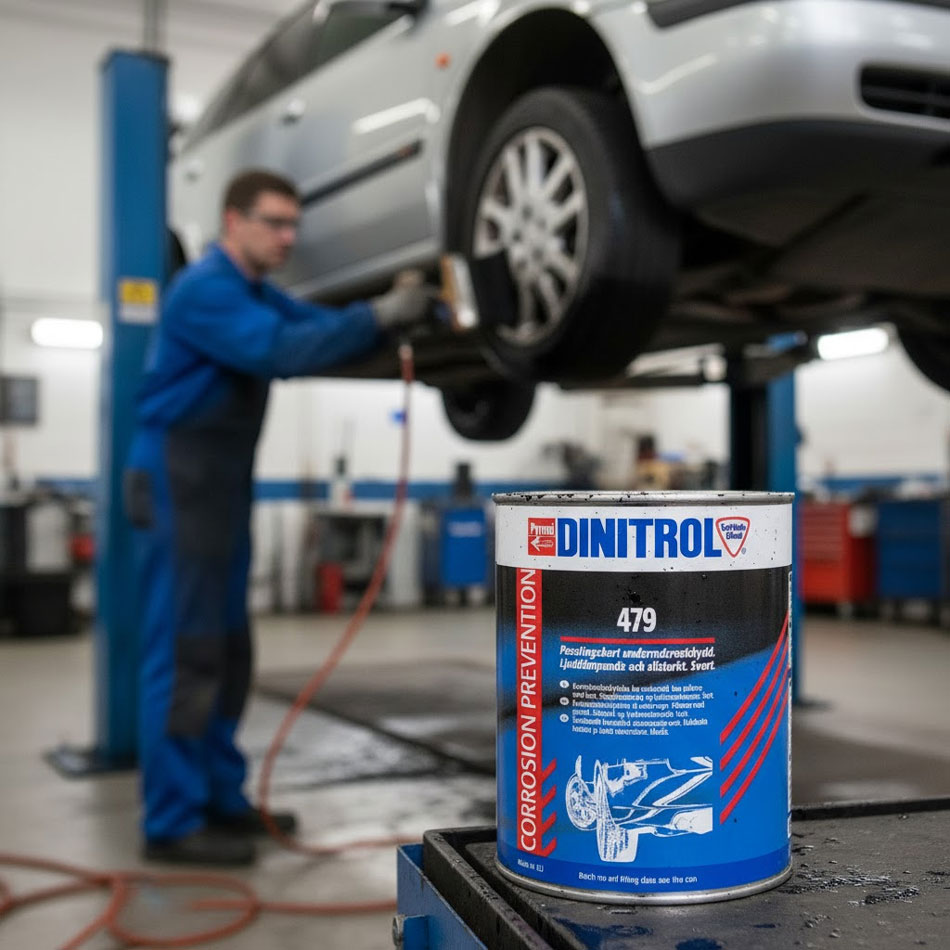 DINITROL 479 густая, битумно-восковая мастика с резиновым наполнителем. После высыхания образует очень прочную, эластичную, устойчивую к износу и шумопоглащающую пленку, выдерживающую значительное механическое воздействие (песком, гравием, солью и т.д.).